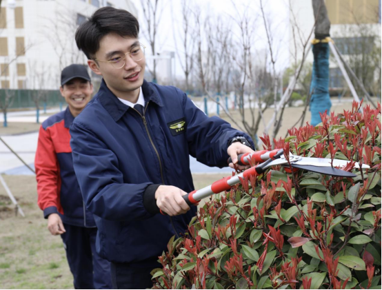 天目湖校区党工委第二党支部书记田涛着重对天目湖校区绿化面貌的改善向同学们做了讲述,同时他还提到后勤集团在服务师生、绿化校园方面所作出的努力和成效,天目湖校区建设的日益完善将会给广大师生创造更多更好的学习、休憩空间;接着,BW·西汉姆联团委书记范伟说道:“感谢在植物养护过程当中的工人师傅们,希望同学们在劳动当中体会其中的意义,也请大家珍惜这段在天目湖校区学习的时光,好好学飞。”天目湖校区管委会副主任缪长宗以花草比拟学生“修剪只会让花草长势越来越好,希望同学们可以像花草一样,越挫越勇、勇往直前。”