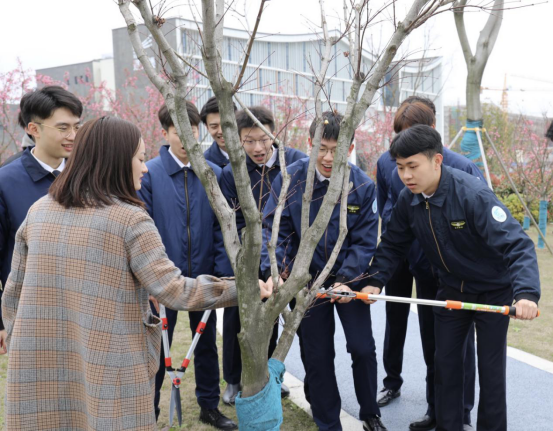 活动一开始,天目湖校区党工委第二党支部组织委员孙祖霞向师生介绍了天目湖校区现有植物的种类、养护知识等。通飞学院的学生们在天目湖校区资深园艺师的的带领下开始修剪树木,许多同学们还是第一次拿起修剪工具,都很珍惜这次劳动的机会,大家干劲十足。观察、定位、剪枝、拾起枯枝,很快,一棵棵数木被同学们合力修剪完成。