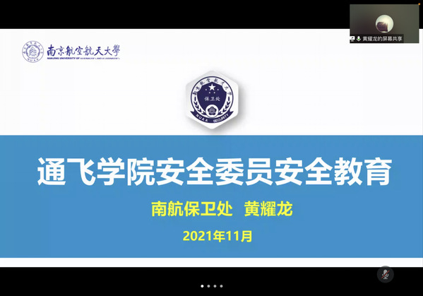 最后,保卫处驻天目湖校区办公室主任、学院安全辅导员黄耀龙为学院全体安全委员进行了安全教育培训。本次安全教育培训重点围绕消防安全、电信诈骗等方面展开,提升了学院全体安全委员的安全意识和事故应急处理能力。另外,“双十一”在即,黄耀龙老师要求安全委员做好防诈反诈宣传工作。