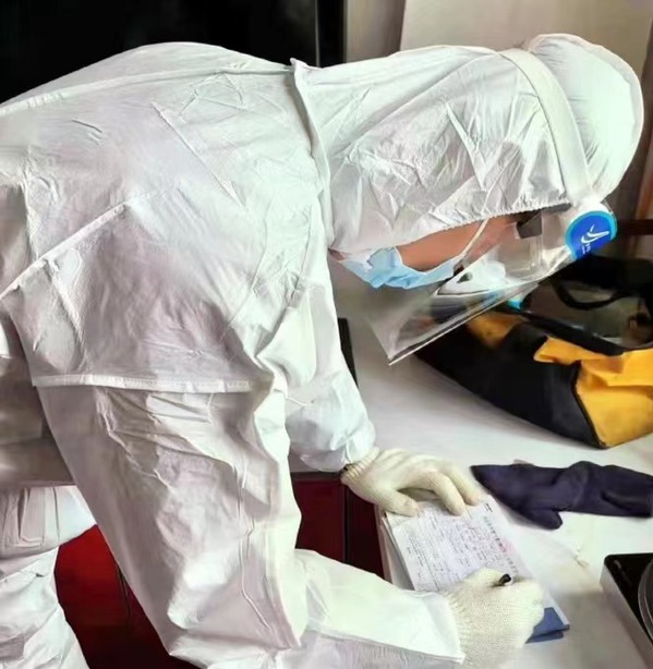 协助社区开展疫情防控全民核酸检测工作期间,正值黑龙江最严寒的“四九”天气,室外温度零下25度,滴水成冰,室内因为空气流通房门是敞开的,温度也接近零度。在社区党支部的领导下,大家克服温度低,居民情绪波动大,现场维持秩序难度大等困难,顺利完成全民核酸检测工作,累计协助社区采集居民核酸检测样本82000余人次。吴家昌在信息录入采集工作中,由于防护服密不透气,里面的衣服不一会儿就被闷出的汗水浸湿,他一穿就是10个多小时,没有一声抱怨,没有一点退缩,与社区工作者以及医护人员并肩战斗。真正体现出了新一代“00”后大学生的精神面貌!用“志愿红”化成爱的星星之火,奉献百姓,温暖冰城。