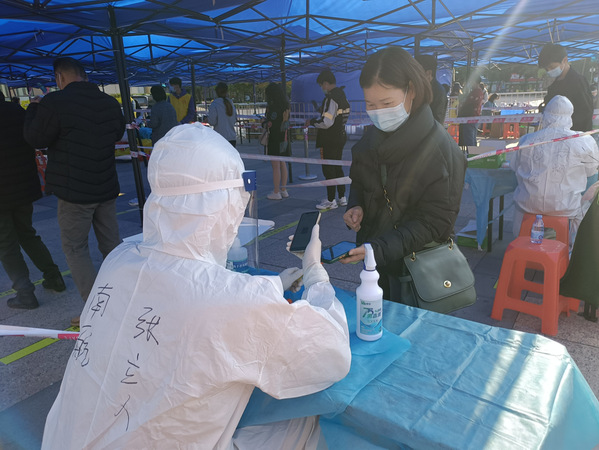 为此,吴家昌同学认真学习疫情防控人员防护知识、信息采集系统操作方法,模拟处理现场遇到突发情况等知识。为了圆满完成全员核酸检测任务,阻断病毒传播,根据社区的具体部署,吴家昌提前到达核酸采集点,和其他志愿者一起搬运防疫物资,准备核酸检测的各项材料等,为到现场的群众组织排队,宣传最新防疫政策,反复提醒居民做好安全距离,不断提醒老人和儿童可以在绿色通道人员检测。
