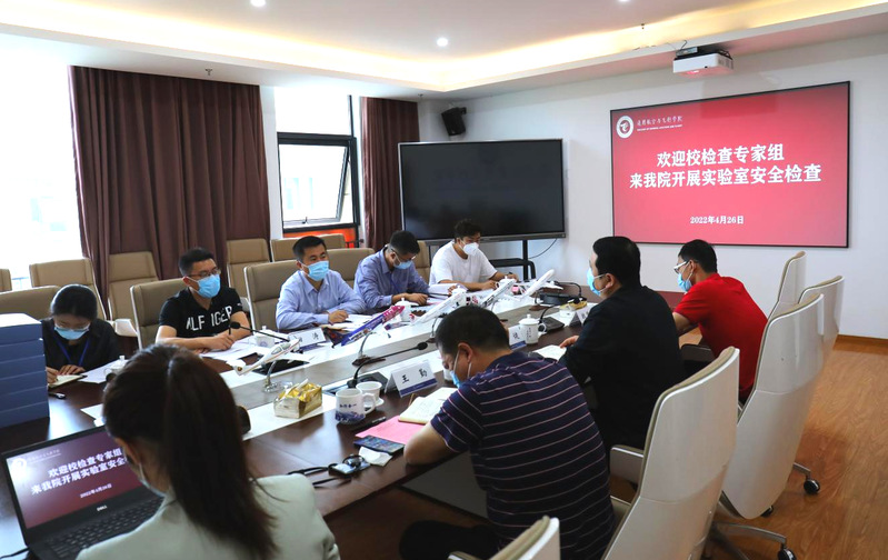 司海青代表学院向各位检查专家表示热烈的欢迎,介绍了我院实验室建设与运行情况、学院安全生产责任体系、实验室安全管理制度、前期安全检查及隐患整改落实情况以及下一步推进的重点工作。