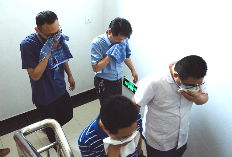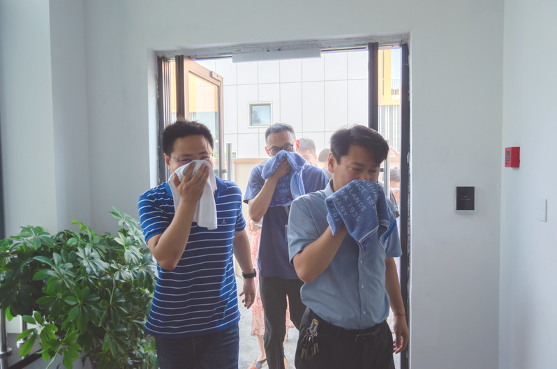 上午九点四十,参与演练活动的全体人员都集合在了B3宿舍平台,十点整警报响起,靠近马路某宿舍的装置冒起了烟雾,所有人员根据引导员指示,从各宿舍内迅速撤离,整个过程严谨有序,用时不到2分钟,经各部门清点人数,疏散中无人员遗留房间,也无出现任何伤情。