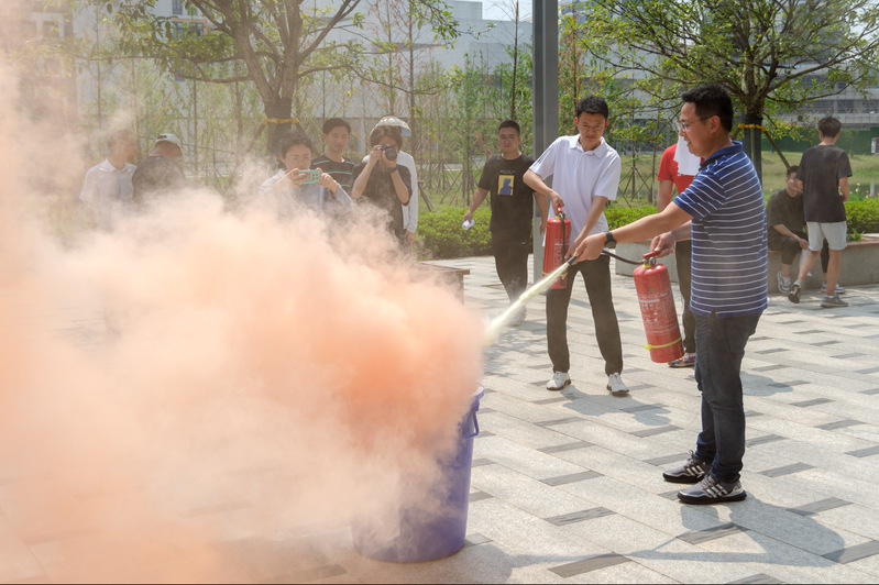 校保卫处工作人员现场向参训人员介绍了灭火器的用途、性能、原理和操作方法并当场进行示范,直至火焰熄灭。随即,在工作人员的指导下,全体参加培训的通飞学院的教职工进行了操作演练,提升了应对突发情况的“实战”能力。