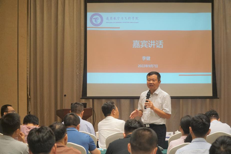 李健分享了从业多年来对发展通用航空的思考,向师生们全面讲解了发展通航的重要意义和促进对策,为学生们掌握通航的历史、现状和问题理清了思路。他表示,通用航空在应急救援等方面具备独特优势。