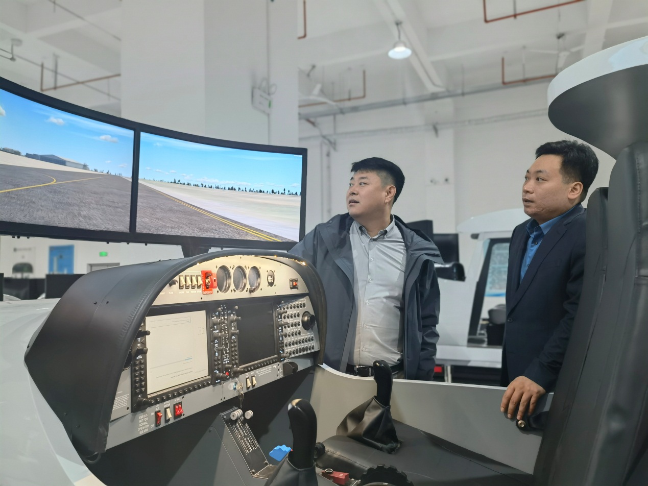 会前,李雷一行参观了学院初级飞行模拟实验室、人因工程CRM实验室及型号飞行模拟实验室。