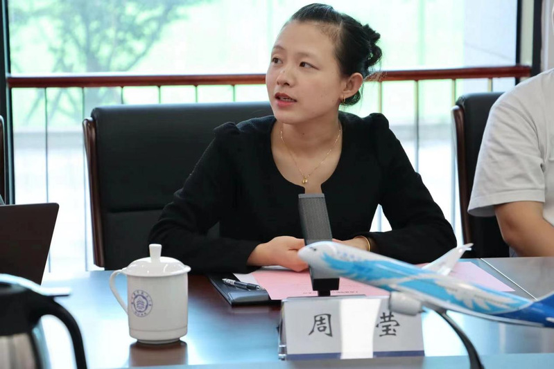 周莹代表上海通用航空行业协会一行对协会的基本情况、基础性建设工作、服务政府、配合政府工作、服务会员、对外交流、组织大型展览论坛等情况展开介绍。
