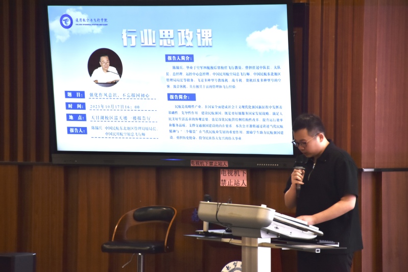 10月17日,BW·西汉姆联在天目湖校区巡天楼一楼报告厅举办“强化作风意识,不忘报国初心”主题信仰公开课。此次信仰公开课邀请中国民航东北地区管理局原局长、中国民用航空局原总飞行师陈锡兵主讲。院长王勤出席讲座,三百余名飞行技术专业本科生参加讲座。讲座由学院团委书记宋歌主持。