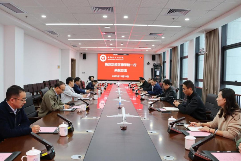 会上,双方就专业培养方案制定、课程授课模式、通飞类招生、教学实验室建设、行业现状和就业前景等方面,进行了深入的交流,共同探讨了新形势下教育管理的相关问题。会前,孙永荣一行还参观了学院飞行演示风洞、型号飞行模拟等实验室。