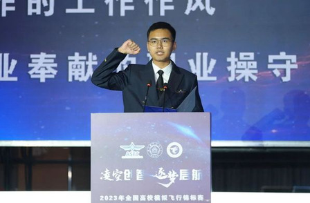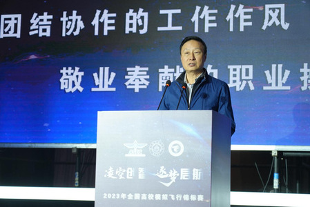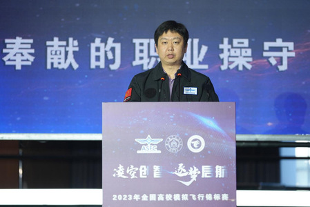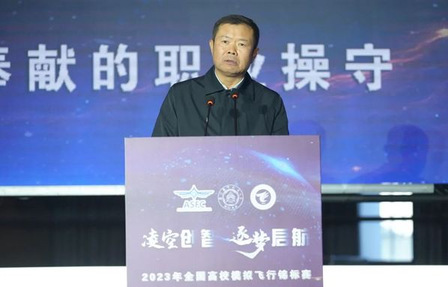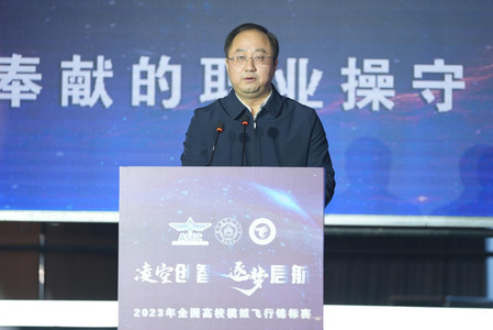 顾国平宣布2023年全国高校模拟飞行锦标赛暨全国航空飞行类本/专科大学生竞赛交流活动正式开幕。