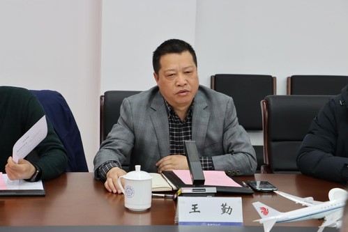 王勤对南方航空公司一行的到来表示热烈欢迎。他表示,学院高度重视和南方航空的合作,对即将入学的新一批南方航空委培飞行学生充满期待。他希望,双方就飞行人才培养加强交流合作,增强合作的广度和深度,通飞学院将持续聚焦主流航司飞行人才培养,逐步推进柔性培养方案,打造厚基础、宽口径的培养模式,为民航事业的发展持续贡献南航力量。
