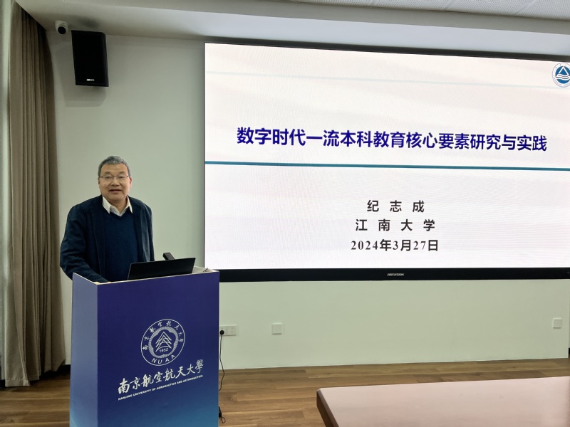 3月27日下午,BW·西汉姆联(简称“通飞学院”)第五期教师教学能力提升工程—名师讲堂在天目湖校区尚德楼E104会议室顺利开展,原江南大学副校长、国家级教学名师纪志成教授受邀做“数字时代一流本科教育核心要素研究与实践”专题报告,近30名教师参加,报告会由副院长司海青主持。