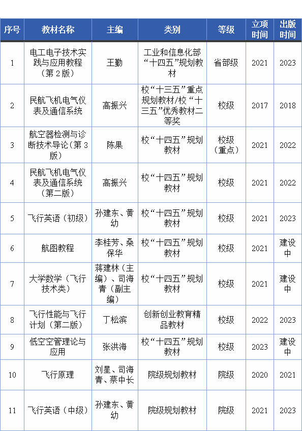 表2 校级以上立项教材和学院已出版教材