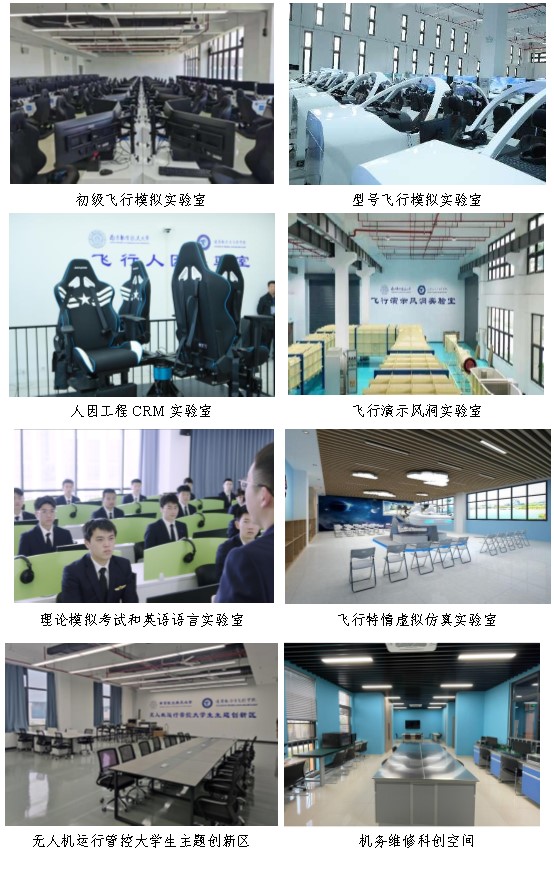 通飞学院已完成初级飞行模拟实验室等6个专业实验室的建设在建航空发动机故障模拟实验室等7个专业实验室、无人驾驶航空器运营与管理实验室等10余个专业实验室。机务维修专业科创空间和无人驾驶航空器系统工程专业大学生主题创新区,已建设完成并投入使用,面向全校学生开放。