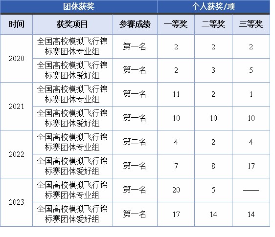 表4 全国高校模拟飞行大赛通飞学生获奖情况