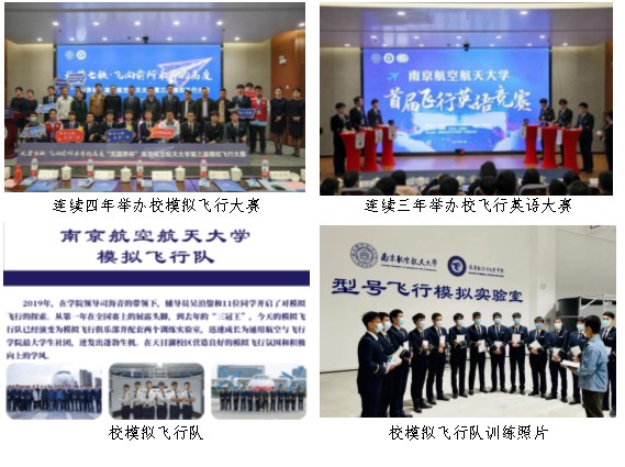 承办2021年、2023年全国高校模拟飞行锦标赛(Ⅱ级甲等),参赛的规模和比赛的规格达到历年最高,并被人民日报、新华社等主流媒体进行宣传报道。我校三年获得飞行与爱好组团体双冠军,各类别成绩综合位列全国首位,形成“南航现象”。
