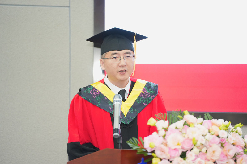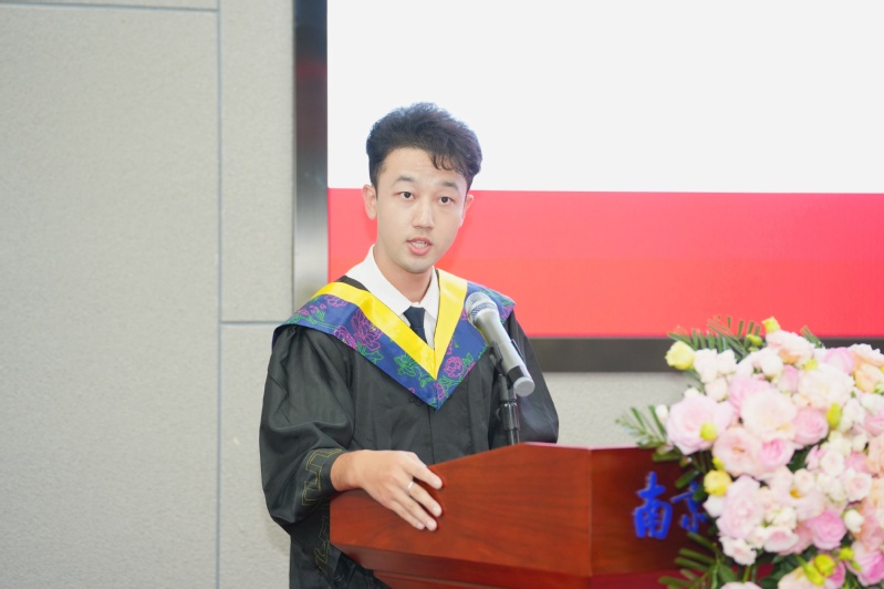 胡智浩作为学院优秀毕业生代表发言,他代表全体毕业生,向学校、院系、家人、同窗挚友致以最诚挚的感谢,回顾了求学生涯一个个难忘的奋斗故事,表示未来将不辱使命,努力拼搏为母校争光。