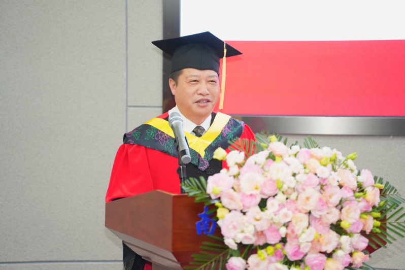 经云飞作为校友代表发言,他回忆了在南航的学习生活点滴,表达了对母校的深厚感情,建议同学们在未来的职业生涯中将职业干成事业,实现和母校的双向奔赴,做到远离红线、守住底线,不忘初心、永葆热情,彬彬有礼、谦虚有礼。