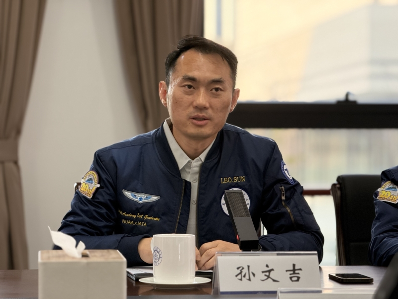 上海航空飞行分部经理、首届飞行技术专业班级班长孙文吉作为校友代表发言。他回顾了自己在南航求学的美好时光,畅谈人生经历,分享成功经验,心中充满了对过去同窗情谊的怀念,对老师们辛勤教诲的感激,以及对那段充满梦想与追求的学生时代的无限感慨。他衷心祝愿学校延续72载的辉煌办学成就、再创佳绩,祝愿学院在高质量发展之路上行稳致远,为中国的民航事业输送更多的人才。