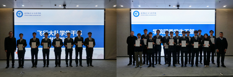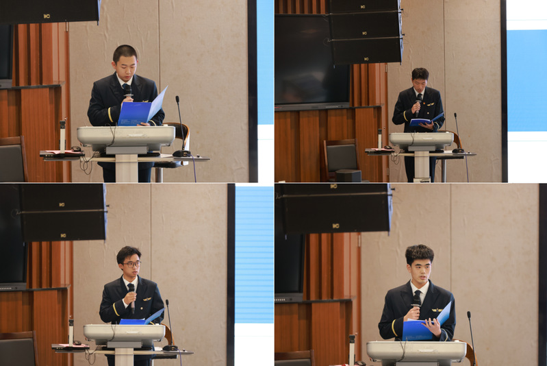 飞行大队学生干部代表孙易、学院团委学生干部代表魏健翔、飞行中队学生干部代表王宏开、学院学生组织学生干部代表瞿天宸依次发言,他们表示将充分发挥联系师生的桥梁和纽带作用,以饱满积极的心态和全心全意为同学服务的实际行动助力学院高质量发展。