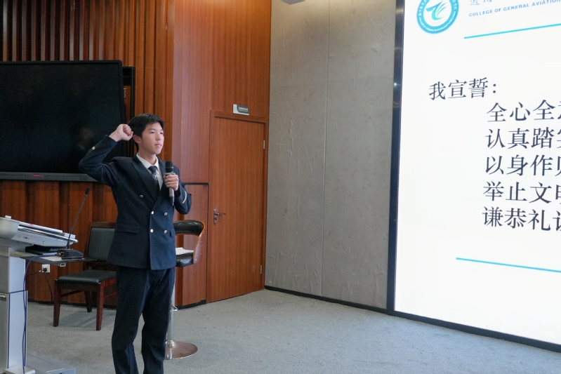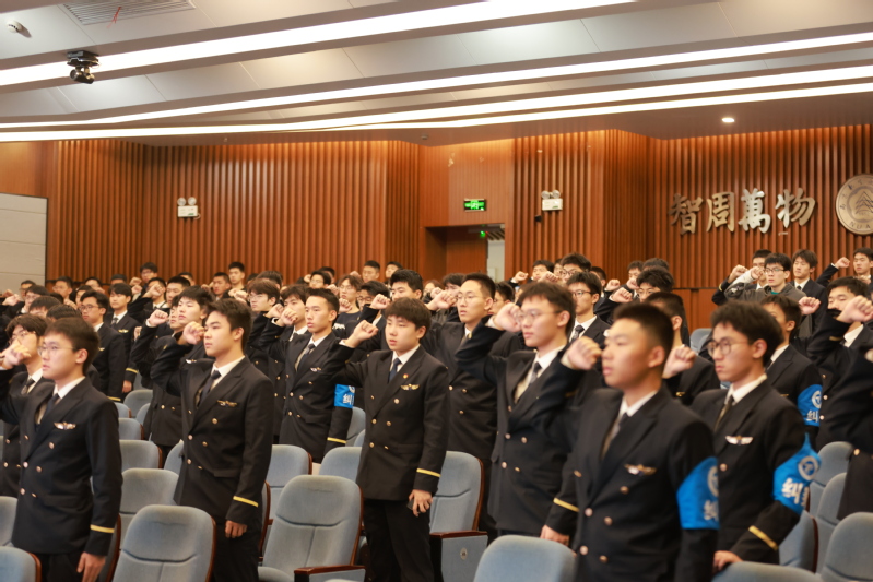飞行大队副大队长李昊翔带领现场全体学生干部进行宣誓。