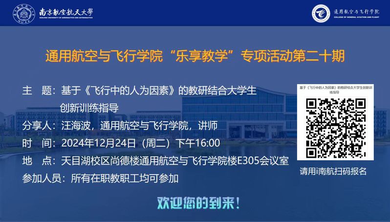 2024.12.24【乐享教学-第二十期】基于《飞行中的人为因素》的教研结合大学生创新训练指导