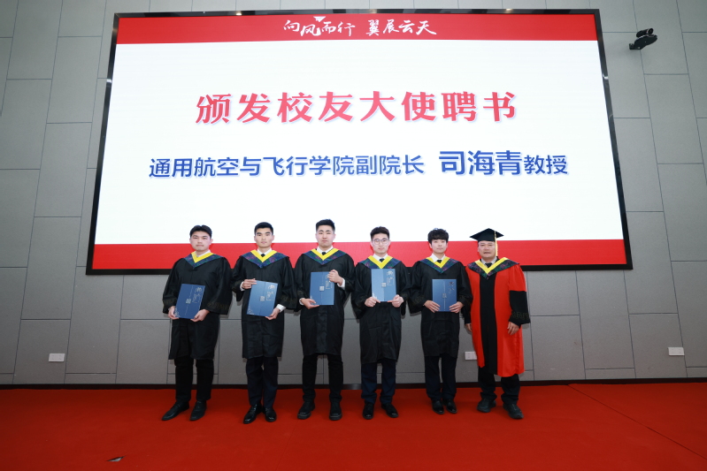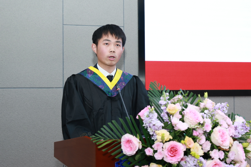 孙恒作为学院优秀毕业生代表发言,他代表全体毕业生向学校、学院、老师、家人和同学致以最诚挚的感谢,他表示未来将紧跟时代浪潮,传承南航精神,不负师长所托,奔赴万里长空。