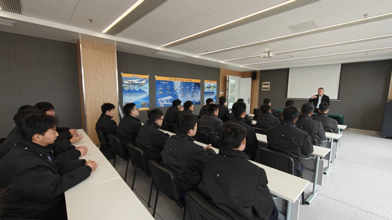 在机场多功能报告厅,拥有数十年飞行经验的周岳宁机长以诙谐亲切的语气,分享了亲身经历的飞行故事,为同学们带来了一堂生动的职业启蒙课。他着重强调了理论基础、纪律作风、心理素质以及职业素养对于飞行员生涯的重要性,叮嘱同学们要用好课堂学习渠道和模拟实验设备,守牢安全底线、树牢规矩意识,练就强大的岗位胜任力。