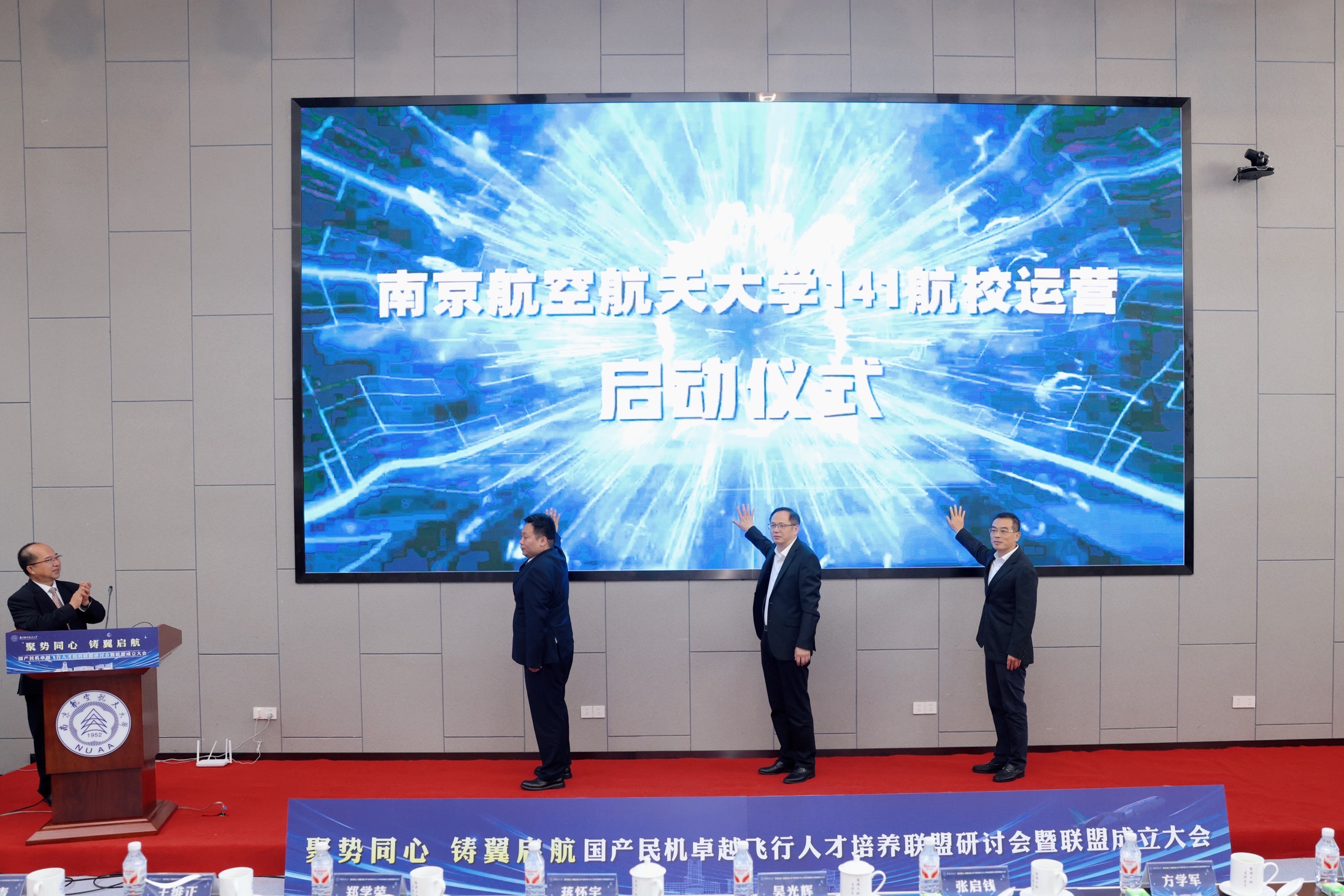 张启钱、方学军以及吉林福航航空学院董事长李雷共同启动西汉姆联CCAR-141航校运营仪式。本次仪式标志着由西汉姆联主导,与溧阳市人民政府、吉林省福航航空学院三方联合组建的全新航校正式开启其专业化、规范化的飞行培训征程,对学校实现民航飞行人才全链条自主培养、为国产民机事业输送具备全球视野与卓越技术能力的高素质飞行人才、增强巩固与溧阳市校地合作具有重要意义,为学校民航特色高质量发展提供有力支撑。