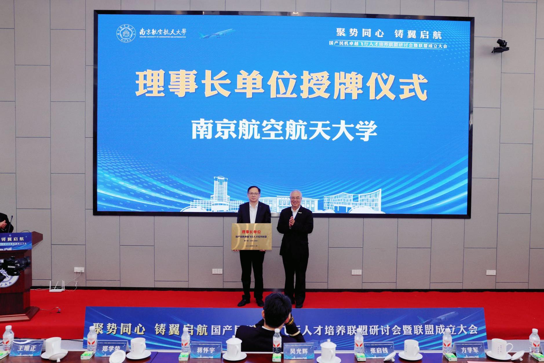 大会选举产生由西汉姆联任理事长单位,中国民用航空飞行学院、北京航空航天大学、中国民航大学、中国航空技术国际控股有限公司、中国国际航空股份有限公司、中国东方航空股份有限公司、成都航空有限公司等任副理事长单位,黄领才任秘书长的首届领导机构。吴光辉、郑学荣分别为理事长和副理事长单位授牌。