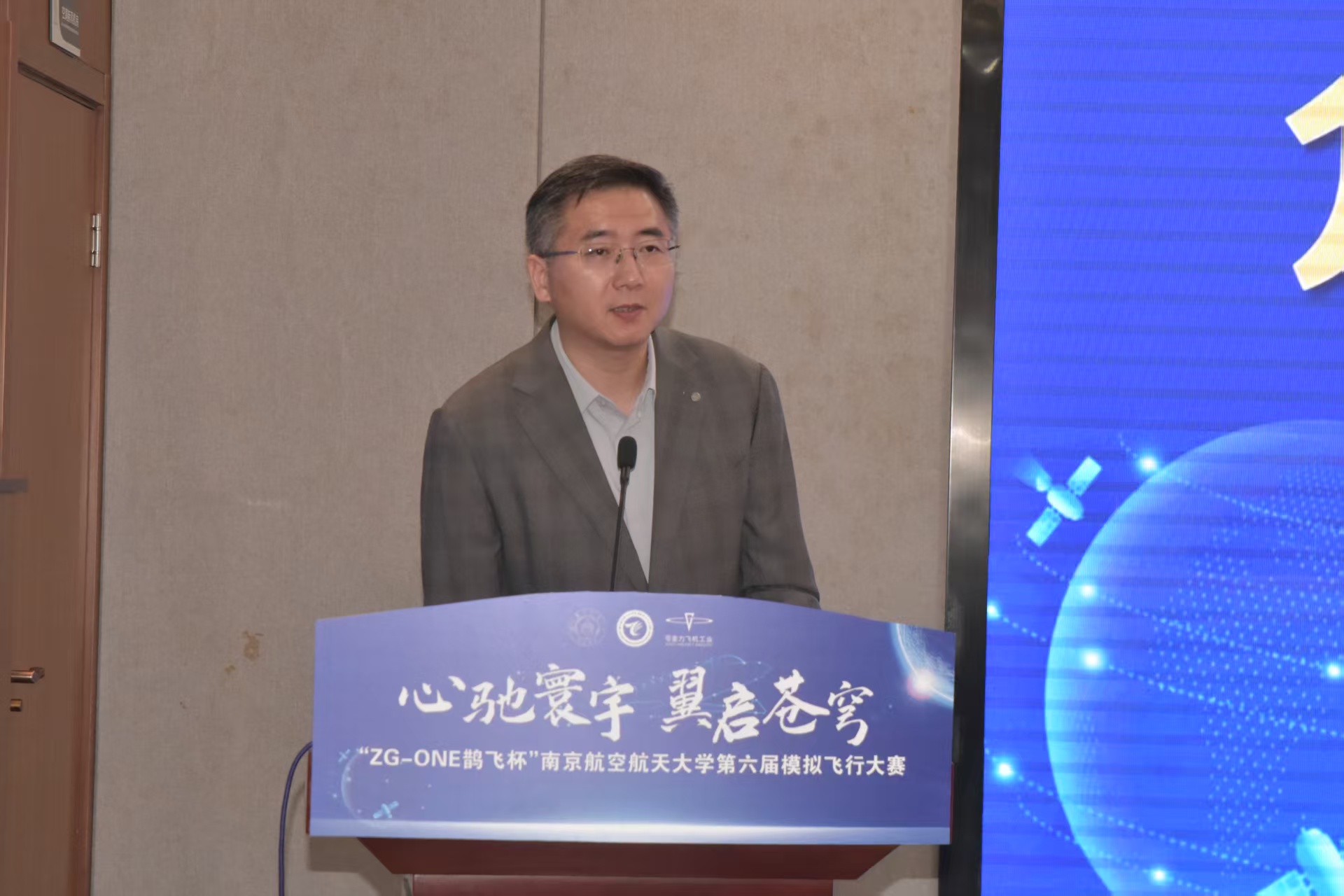 贾思源作嘉宾致辞。他代表零重力飞机工业对本届大赛的成功举办表示热烈的祝贺。他指出,在低空经济浪潮奔涌、航空器形态日益多元的今天,同学们通过模拟飞行所锤炼的空间感知能力、情景意识和对飞行原理的深刻理解,正是未来驾驭航空器、构建立体智慧交通体系所必备的核心素养。他勉励全体同学传承南航人扎实严谨的作风,同时勇于拥抱变革,以赛促学、以赛促训,在勤学苦练中持续精进,早日成长为能够定义未来天空、担当行业重任的一流飞行人才。