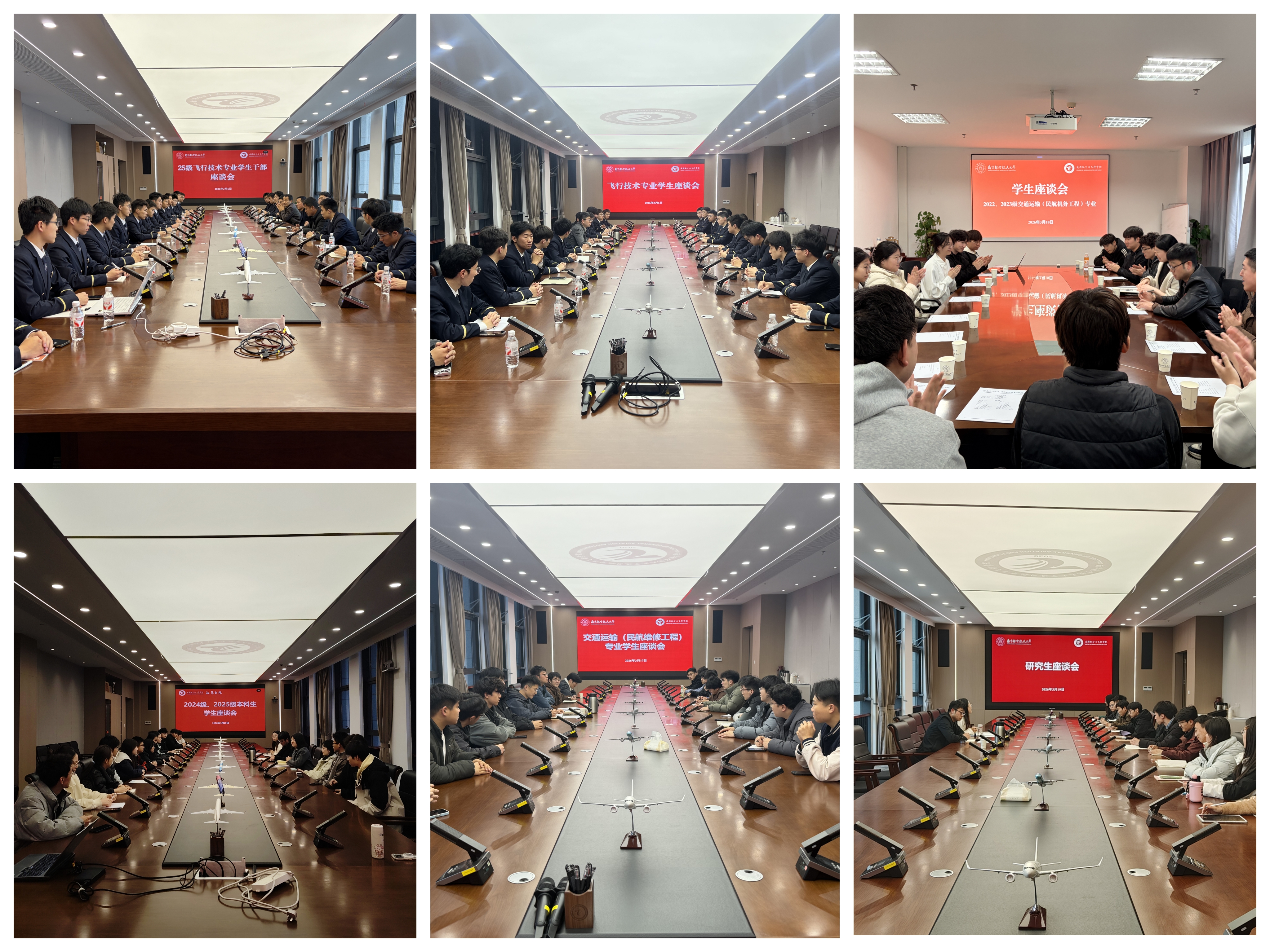 座谈会上,各位学生代表围绕专业学习难点、职业生涯规划、学院管理服务优化、课余生活保障等方面积极建言献策。其中,研究生代表就跨校区求职就业、文体活动开展、工作室网络、宿舍安排等问题提出建议。交通运输(民航机务工程)专业学生代表分享了求职签约、考研准备、推免院校选择等方面的经验与感悟。交通运输(民航维修工程)专业学生则围绕班级管理、学风营造、服务同学、自身发展等主题展开交流,并就日常教育管理、升学、就业、实习实践中的具体困惑提出意见建议。飞行技术专业学生代表则聚焦思想引领、作风建设、学业筑基、素质提升与安全保障等核心议题,展现了主动思考、务实担当的精神风貌。
